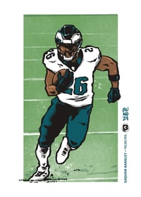 This card is specific to Saquon's debut with Philadelphia in Brazil. His game stats on back of card.
